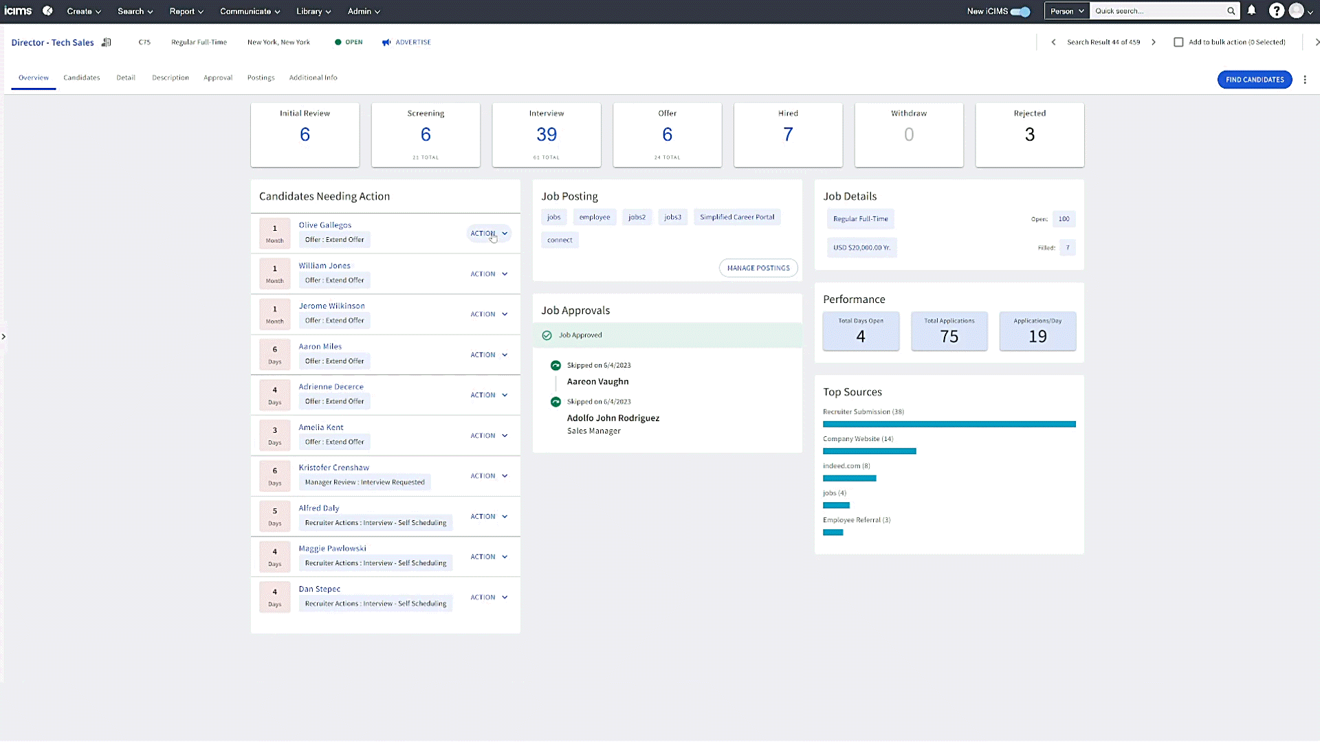 The job overview consolidates important information that recruiters can quickly ac on to get their job filled faster, including: