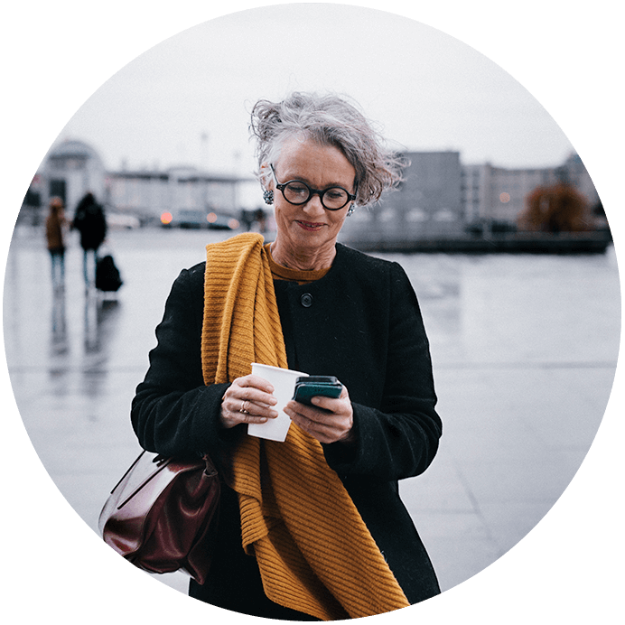 Woman in rainy city checking cell phone