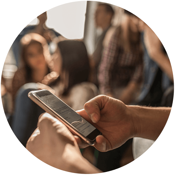 Checking phone in crowded room