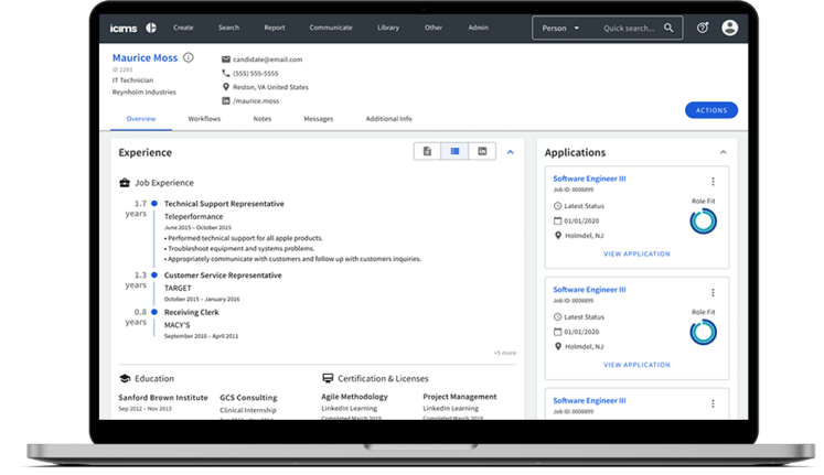 Product demo of iCIMS Talent Cloud customized for your organization