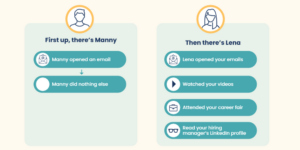 To other talent acquisition technologies, Manny and Lena have both opened an email. To Candidate.ID, Lena is an engaged candidate ready for a hiring conversation, whilst Manny is unengaged. No more cold-calling candidates to find out who is interested in a role.