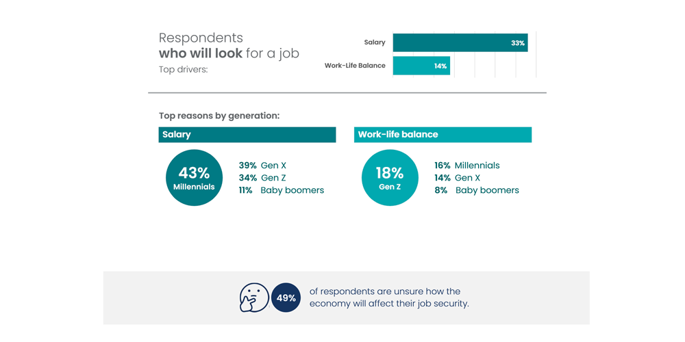 Our report found that salary and work-life balance are driving workers’ employment decisions. These factors are capable of influencing employees to stay in their current positions or seek better opportunities.