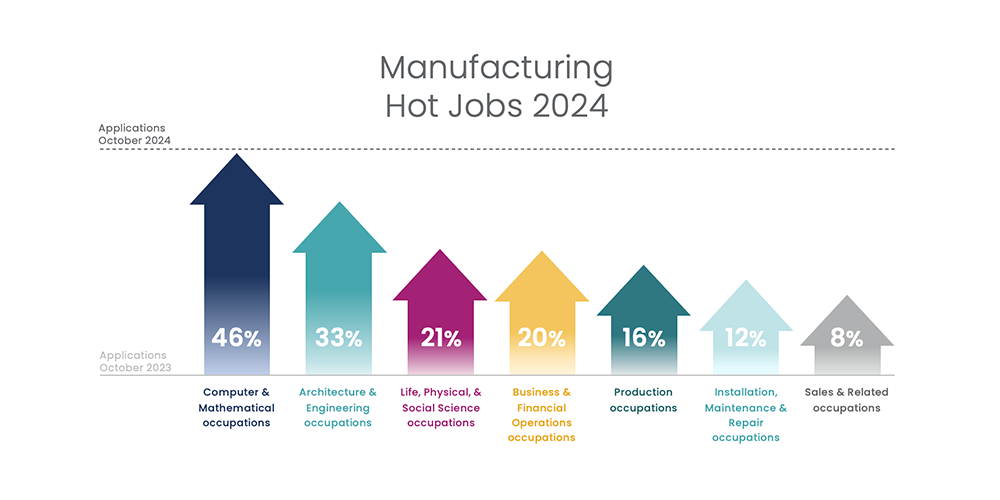 Computer and math jobs are among the most popular gigs in manufacturing. Architecture and engineering are on top, too. Jobs that saw smaller growth skewed toward more traditional manual jobs, including: