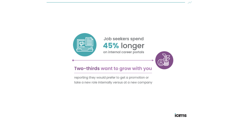 Forget “quiet hiring” (another flavor of the month buzzword for you) — internal mobility and retention strategies must be loud. Make sure employees know your business is invested in their career journey and provide visibility into open roles and opportunities to grow and learn new skills.