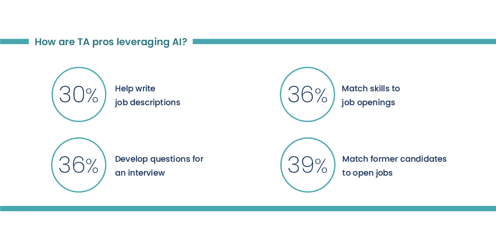 Advancements in AI represent an opportunity on this front—if TA teams get behind the technology. One-third say they fear AI will replace them or make their jobs obsolete. However, reservations and reluctance haven’t turned into refusal. TA pros told us that by using AI, they are saving an average of about two and a half hours per week.