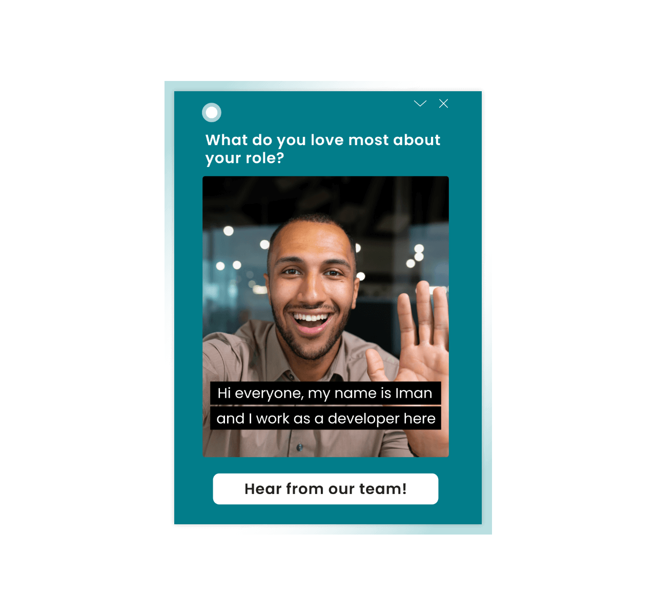 What better way to prove your company is a great place to work than through the authentic voice of your own employees? Easily collect self-recorded video testimonials from internal advocates to promote them on your career site and in your recruitment marketing outreach. Watch candidate engagement levels soar!