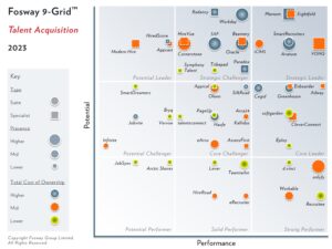 Le rapport Fosway 9-Grid™ est le seul modèle d’analyse de marché de la région EMEA pour les fournisseurs de talents qui évalue les prestataires sur cinq dimensions : la performance, le potentiel, la présence sur le marché, le coût total de possession et la trajectoire future sur l’ensemble du marché. Les entreprises qualifiées de “leaders stratégiques” sont les plus performantes sur la grille et, par conséquent, sont souvent présélectionnées et sélectionnées par ces organisations.